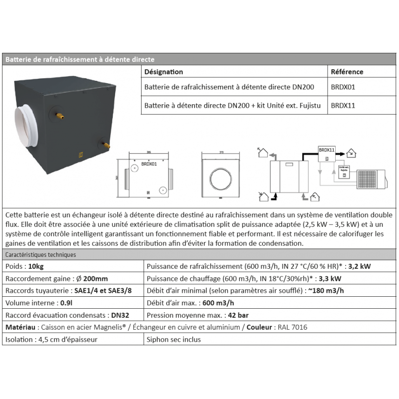 Batterie détente directe DN200 + kit Unité ext. Fujistu